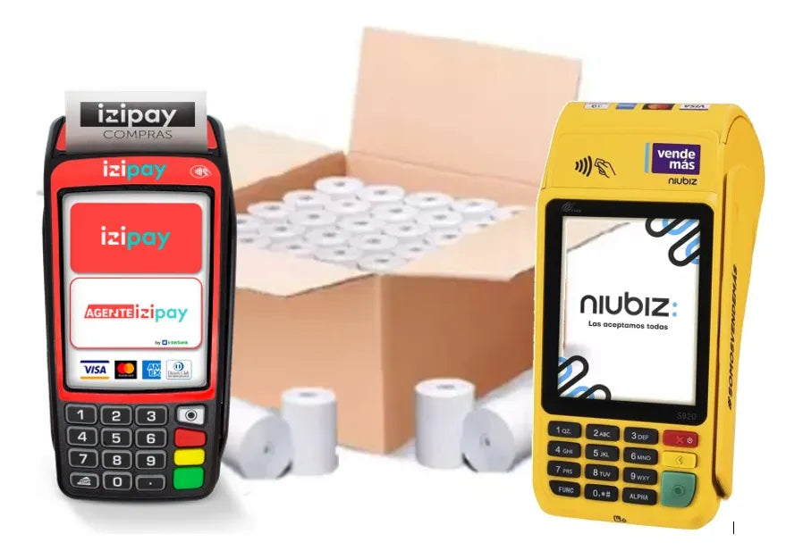 ROLLO PAPEL TERMICO 57x40MM IZIPAY VISA MASTERCARD NIUBIZ PAQUETE X 10 UNDS